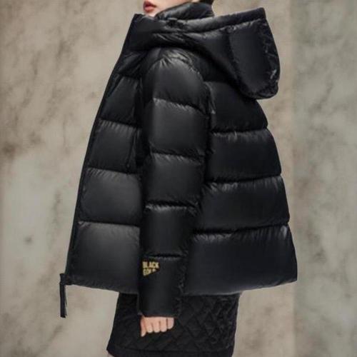 [옷자락]여성 캐주얼 광택 로고 검정 후드 패딩 자켓