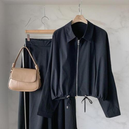 [다잇템]여성 미니멀리즘 하단 집업 카라넥 검정 재킷