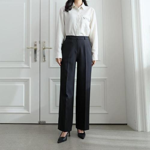 [다잇템]여자 기념일 미니멀리즘 셋업룩 검정 롱 슬랙스 (12061231A)