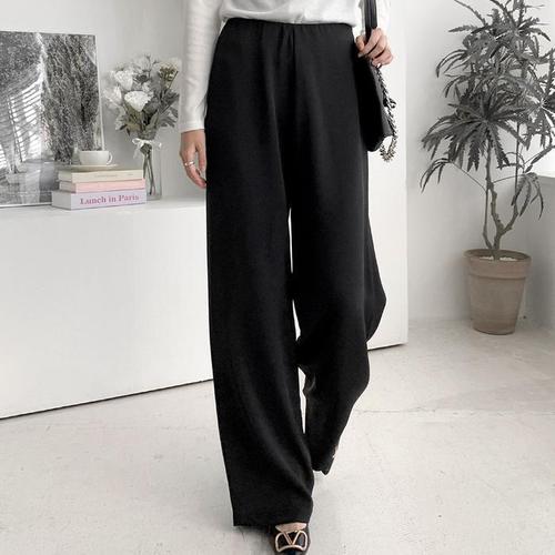 [옷자락] 여자 롱 루즈 일자핏 스판 데일리룩 밴딩 검정 슬랙스