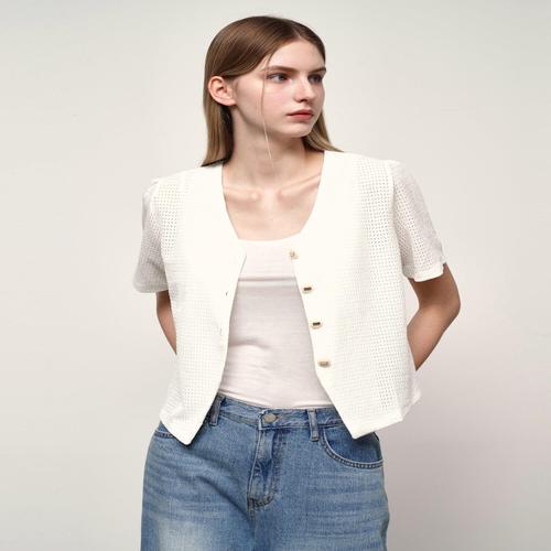 [나인식스뉴욕]브이넥 펀칭 반팔 블라우스 (NP2BA052L0)