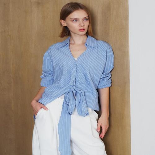 [나인식스뉴욕]브이넥 스트라이프 프런트 타이 긴팔 블라우스 (NP3BA025L0)