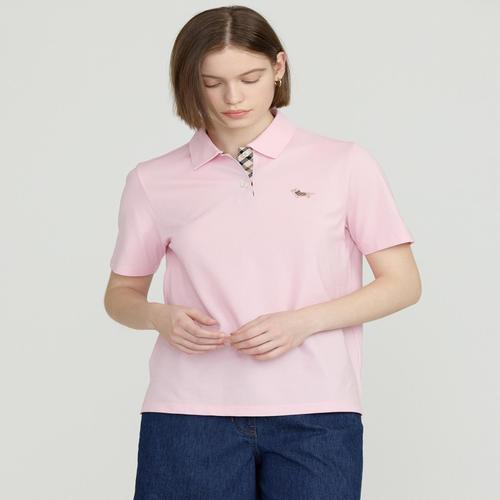 [D-GIFT] 핑크 닥스훈트 로고 자수 면혼방 반팔 카라티셔츠 (DLTS5B291P2)