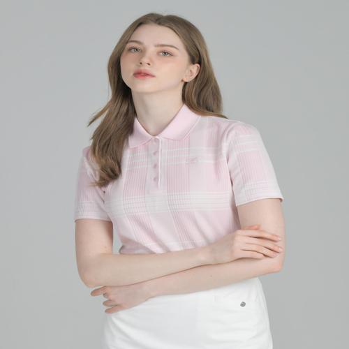 [PREMIUM] 핑크 여름 체크 자카드 반소매 카라 티셔츠 (DNTS5B413P2)