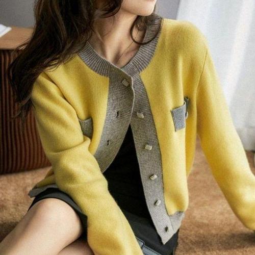 [에이치플러스몰]가디건 울 단추 봄 노란색 간절기 라운드넥 여성 겨울