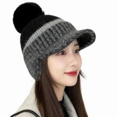 겨울 퍼 데일리 니트 귀달이모자 보온 방한모 골프캡