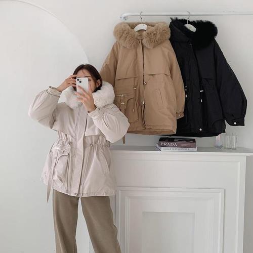 [다잇템]여자 퍼후드 겨울야상 허리스토퍼 자켓 (11691306A)