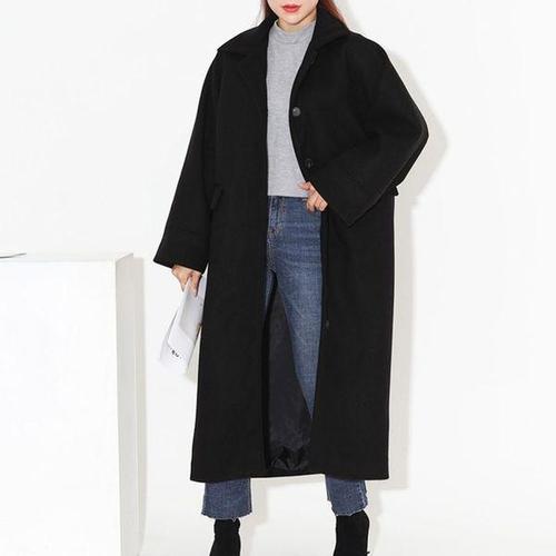 [에이치플러스몰]여성 모직 롱코트 허리끈 겨울 아우터 클래식 코트
