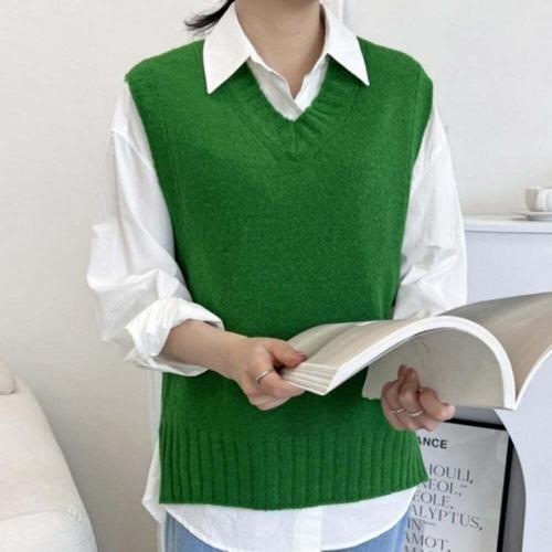 봄 여름 가을 겨울 사계절 데일리 심플 무지 단색 여성 브이넥 오버핏 니트 조끼 베스트 뷔스티에 추천 데일리잇템브이넥니트조끼