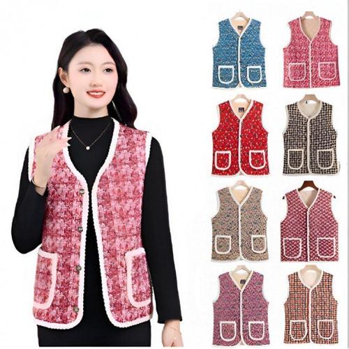 겨울용 꽃무늬 융털 할머니 김장 방한 조끼 엄마 촌캉스 조끼 WFLMDKX