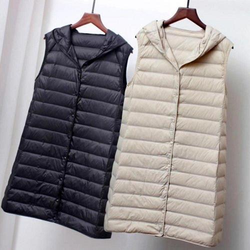 봄 가을 겨울용 후드 경량 패커블 민소매 조끼 여성용 롱 패딩