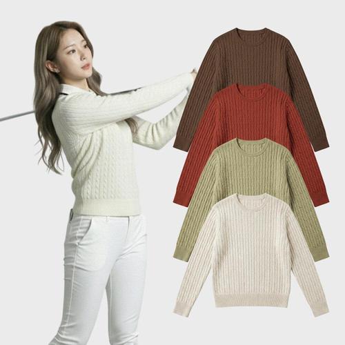 [화이트빌딩]여성 골프 비스코스 꽈배기 니트 라운드 겨울 라운딩 골프웨어