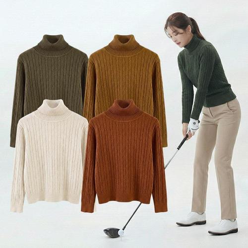 [화이트빌딩]여성 골프 비스코스 꽈배기니트 목폴라 겨울 라운딩 골프웨어