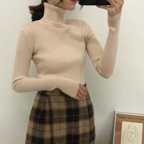 [셀럽하우스]가을 QGUJ9505 겨울시즌 데일리 편안 슬림핏 여성 골지 니트티