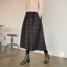 여성 가을 겨울 체크 모직 와이드 팬츠 데일리 캐주얼 밴딩 치마바지 슬림소녀