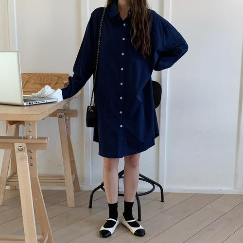 [다잇템]여자 가을 겨울 박시핏 베이직 셔츠 원피스