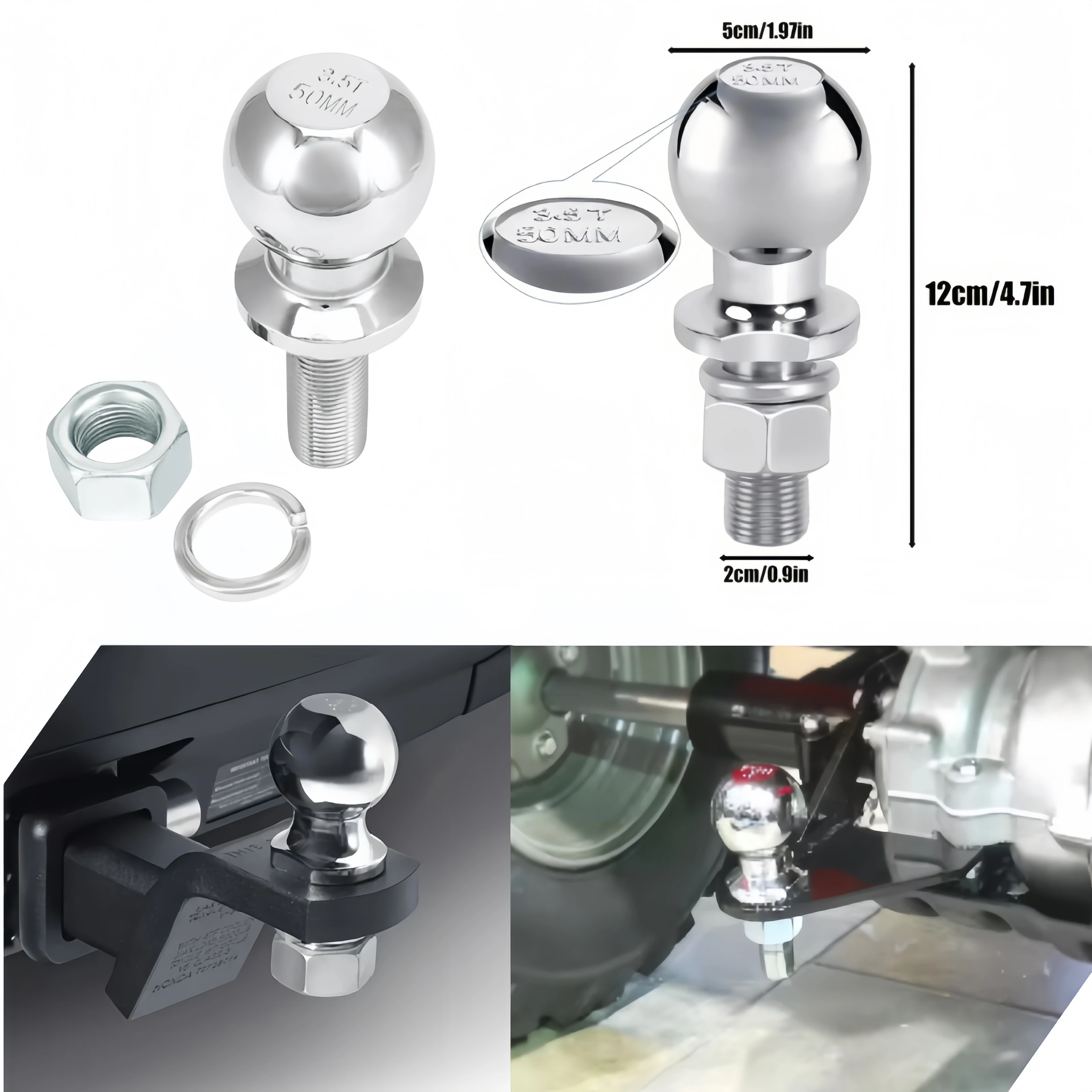 트레일러 토우 볼 히치 마운트 커플링 샹크 M22 나사형 헤비 듀티 50mm 3.5T RV 캠퍼 카라반 보트 장비 견인 액세서리