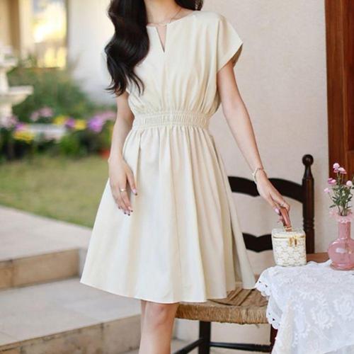 여성 크림색 미디원피스 캡소매 여름 결혼식 하객 WF38D95