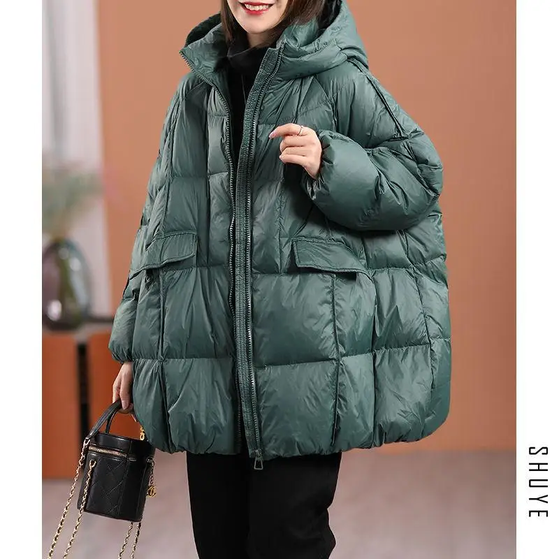 초경량 따뜻한 오리털 패딩 재킷 여성용 캐주얼 두꺼운 롱 드롭형 후드 지퍼 클로저 솔리드 컬러 코트