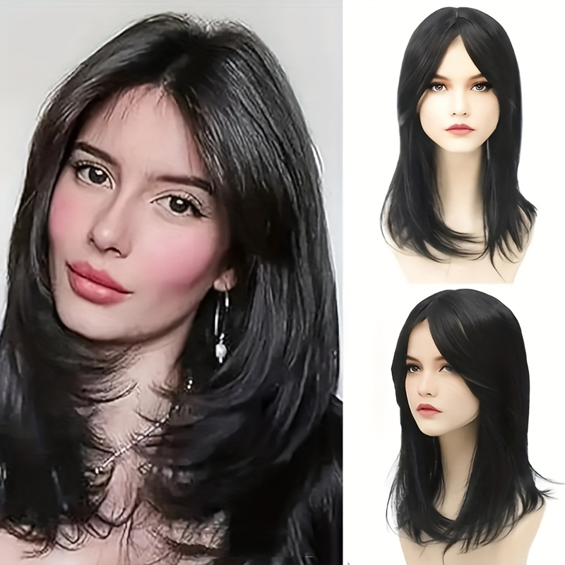 TEMU 여성을 위한 우아한 블랙 긴 웨이브 인공 모발 - 32" 비즈니스 스타일, 통기성 및 편안함, 스타일링이 쉬움, 다양한 상황에 적합, 인공 모발