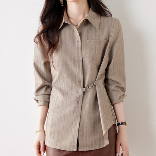 나바바 / NB2854 여성 스트라이프 허리 고리 긴팔 셔츠