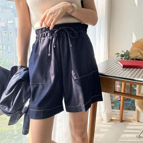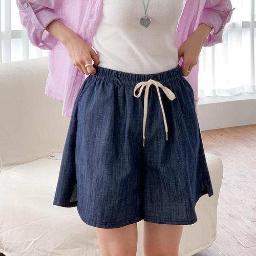 [옷은날개] 여자 허리 고무줄 린넨 청 데님 반바지 편한 팬츠