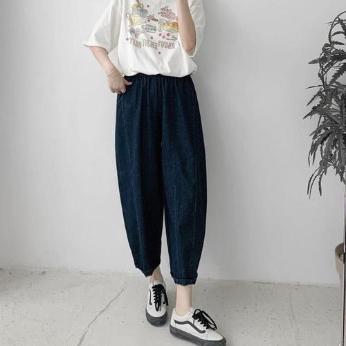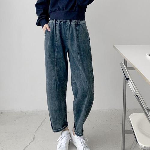 [다잇템]여성 진청 고무줄 벌룬데님 레이어드용 청바지 (18994496A)