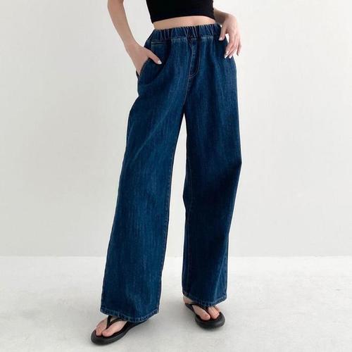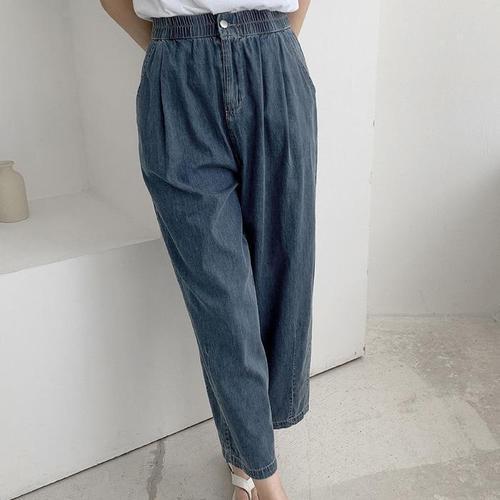 [다잇템]여자 고무줄 와이드핏 면원단 진청팬츠 청바지 (14018451A)