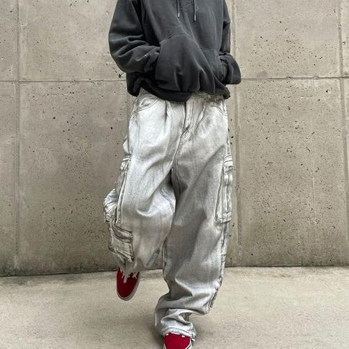 [다잇템]여자 워싱 넓은 그런지 카고팬츠 고무줄 청바지 (19279027A)