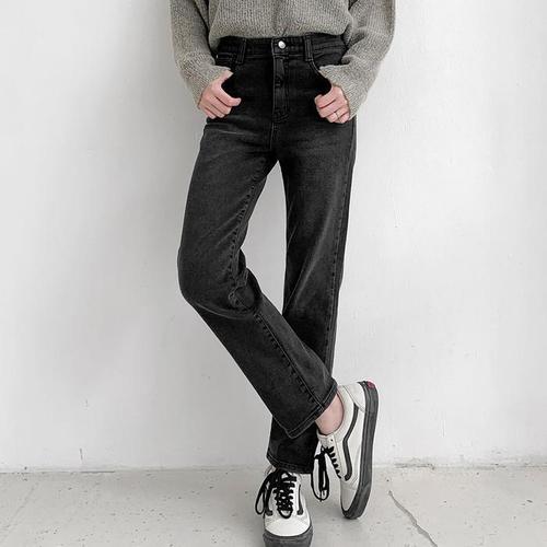 [다잇템]여자 속기모 일자핏 블랙진 편한 고무줄 청바지 (23690257A)