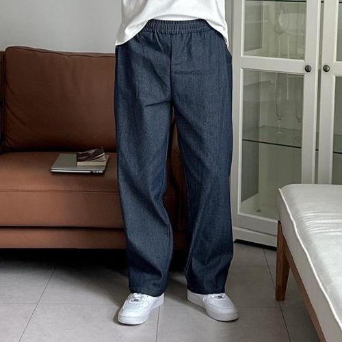 와이드 데님 밴딩 팬츠 남녀공용 세미 고무줄 청바지