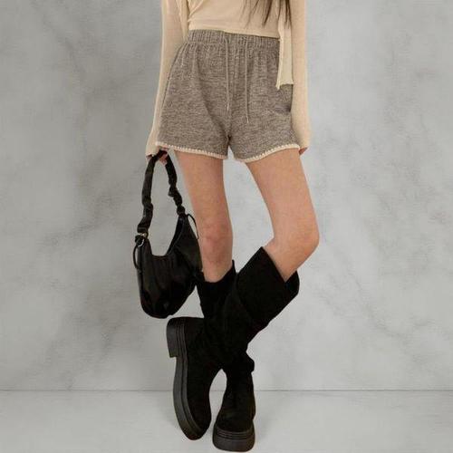 [다잇템]여성 쁘띠 고무줄 골지 스웨터 패턴 반바지