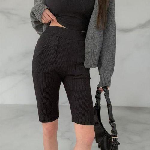 [다잇템]여성 주머니 하프 쫄바지 골지 고무줄 반바지