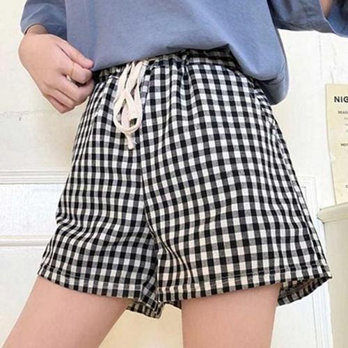 [라일리여성의류] Rly 데일리반 여자 체크 반바지 고무줄 여성 밴딩 반