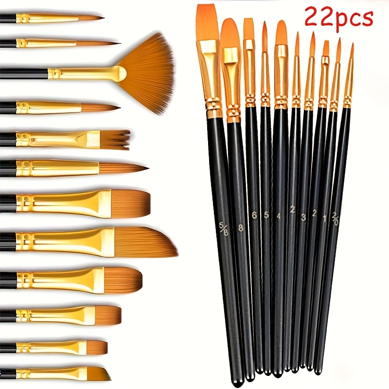 TEMU 22개 전문 아티스트용 블랙 페인트 브러쉬 세트 - 나일론 브리슬 브러쉬 - 수채화, 유화 및 아크릴 페인팅에 적합 - 예술가, 학생 및 공예 애호가를 위한 이상적인 선물 - 할로윈, 크리스마스 및 추수감사절에 완벽함