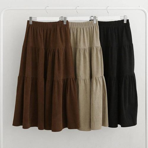 [옷자락]여성 러블리 골덴 캉캉 롱 스커트 데일리룩