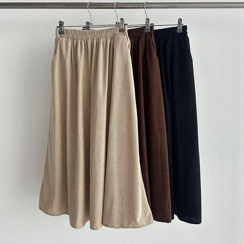 [다잇템]여성 고무줄 후레아 FW 골덴 롱 치마 브라운
