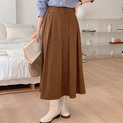 ONM 여성 코듀로이 골덴 허리끈 페미닌스타일 롱스커트