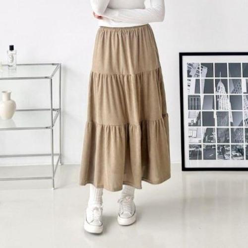 여자 A라인 골덴 코듀로이 따뜻한 롱스커트 치마 벨벳
