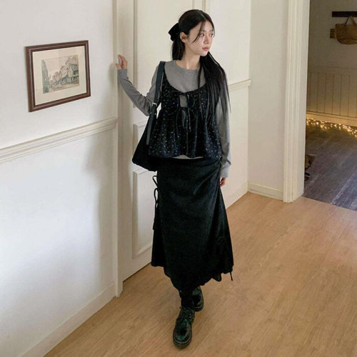 [하프클럽/바닐라비]여성 골덴 밴딩 롱스커트(벨트set)