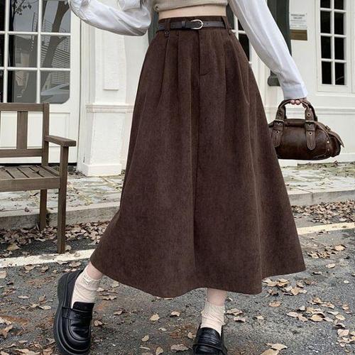 겨울 여성 코듀로이 기모 롱치마 여자 골덴 롱스커트 스판 A라인 치마