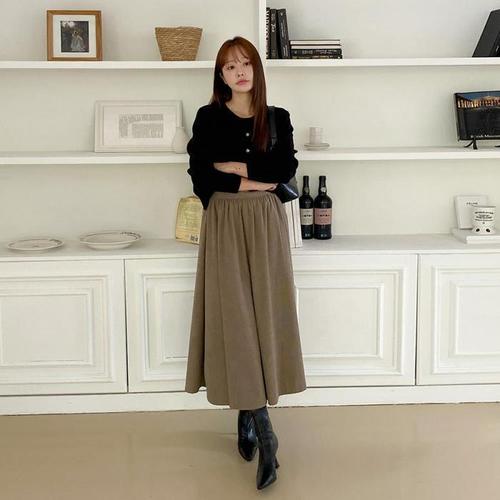 [셀럽하우스]융기모 WPLD0272 코듀로이 골덴 허리밴딩 데일리 롱스커트