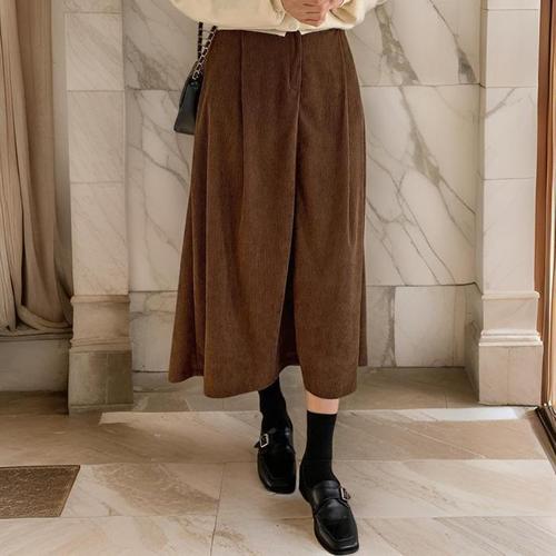 여성 골덴 트임 코듀로이 롱스커트 겨울 클래식 치마