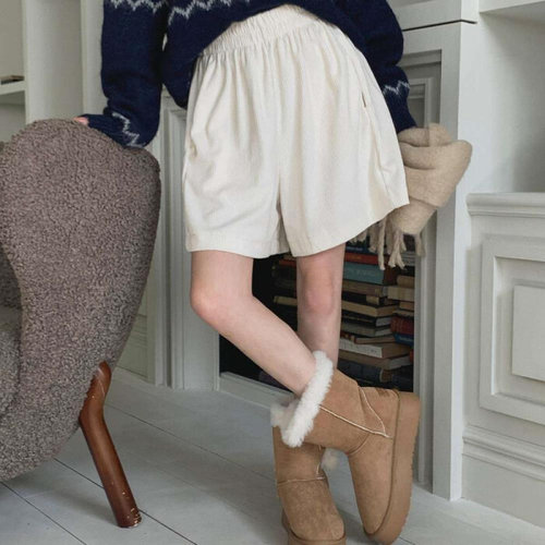 옷자락 / 여성용 와이드 핏 골덴 숏팬츠 밴딩 디자인