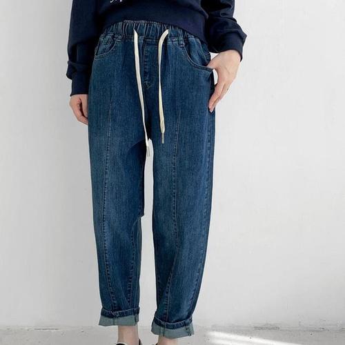 [다잇템]여자 끈밴딩 배기진 FW 벌룬핏 워싱 청바지 (19728133A)