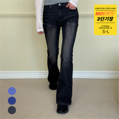 [지기핏] 3단 기장 골반패드투버튼 부츠컷 밴딩 데님 여성청바지