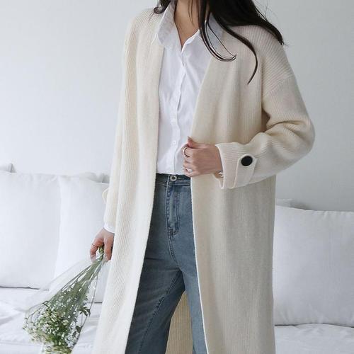 [다잇템]여자 가운 단추 골지 롱슬리브 브이 롱가디건 (29744174A)