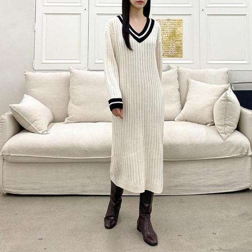 [다잇템]여자 모양 편한 골지니트 콘트라스트 롱원피스 (12158934A)