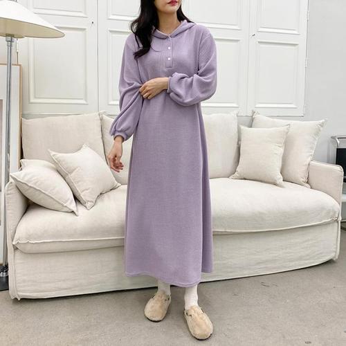 [다잇템]여자 롱 후디 펌킨소매 왕골지 편한 FW 원피스 (12088871A)