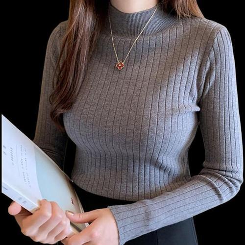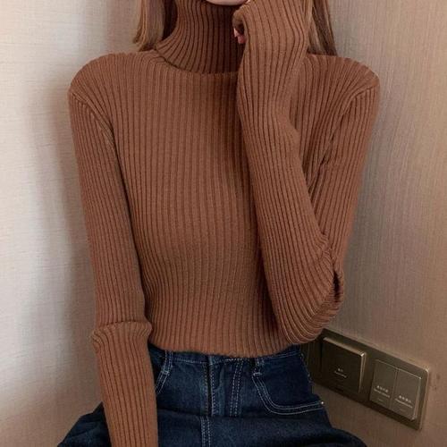 [옷은날개] 여성 데일리 골지 니트 스웨터 목폴라 티셔츠